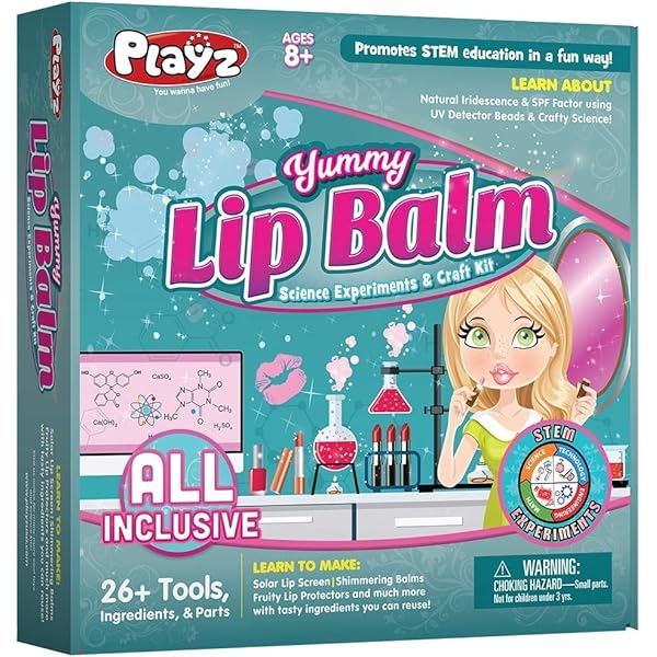 Amazon Com Playz Yummy Lip Balm Makeup Arts Craft Kit To Create Fruity Lipstick Shimmering Balms Solar Lip Screens Using Science Experiments For Girls Teens Teenagers Kids Ages 8